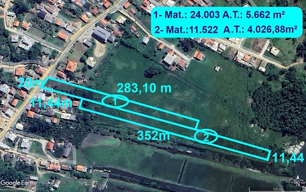 - SC, ponto de coordenadas: -28.394263, -48.884278. O terreno possui 20m de