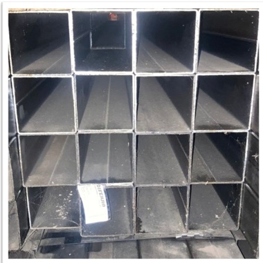 LOTE 2 – APROX. 10.800 KG DE SUCATA DE TUBOS ESTRUTURAL DE AÇO CARBONO PRETO, MEDIDAS: 16 FARDOS (APROX. 256 UNIDADES) 100X100X2,25 A 2,5 MM – 6 MTS DE COMPRIMENTO