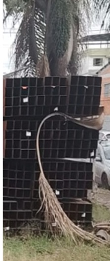 LOTE 5 – APROX. 19.500 KG DE SUCATA DE TUBOS ESTRUTURAL DE AÇO CARBONO PRETO, MEDIDAS: 12 FARDOS (APROX. 192 UNIDADES) 120X120X 2,25 A 2,5 MM – 12 MTS DE COMPRIMENTO