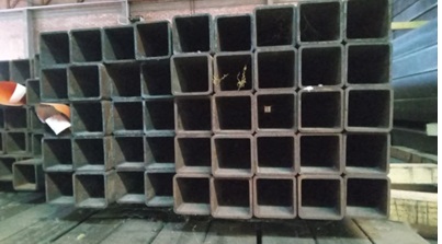 LOTE 12 – APROX. 7.200 KG DE SUCATA DE TUBOS ESTRUTURAL DE AÇO CARBONO PRETO, MEDIDAS: 12 FARDOS (APROX. 185 UNIDADES) 76,5X76,5X 4,8 A 5 MM – 3,4 MTS DE COMPRIMENTO