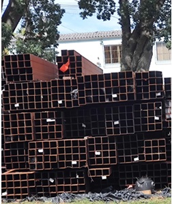 LOTE 15 – APROX.54.000 KG DE SUCATA DE TUBOS ESTRUTURAL DE AÇO CARBONO PRETO, MEDIDAS: FARDOS VARIANDO DE 8 A 16 UND. (APROX. 610 UNIDADES) 120X120X 2,5 A 2,75 MM – 10,6 A 12 MTS DE COMPRIMENTO