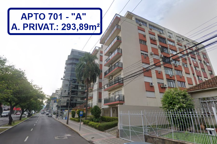 DESCRIÇÃO DA MATRICULA: APTO 710-A: O APARTAMENTO nº 701-A do Bloco "A", localizado no sétimo pavimento do "Edifício Hermitage", com a área privativa de 293,89m2 e área total de 332,80m2, correspondendo-lhe uma fração ideal no terreno e coisas de uso comum de 0,0437, constituído de uma sala de estar, uma sala de espera, um gabinete com WC, um terraço ajardinado, quatro dormitórios, sendo um com banheiro privativo, um banheiro social, uma cozinha, uma área de serviço, uma despensa, um dormitório de empregada e um WC de empregada; cujo edifício é constituído de cinco Blocos, designados A, B e C, com entrada pelo nº 1911 da Avenida Presidente Vargas, Bloco D, com entrada pelo nº 1548 da rua Araujo Viana, e Bloco E, com entrada pelo nº 1542 da rua Araujo Viana, acha-se construído em um terreno situado na zona urbana desta cidade, à Avenida Presidente Vargas, com 29m10 de frente, por 83m00 de fundo, confrontando pela frente, ao Norte, com a referida Avenida Presidente Vargas; a Leste, com propriedade da Sucessão do Dr. Astrogildo César de Azevedo e outros; e, ao Sul e Oeste, com propriedade de Clotário Menna Barreto. Dito imóvel possui frente também para a rua Araujo Viana.