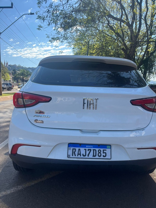 Fiat/Argo 1.0, ano/modelo 2020/2020, cor Branca, placas: RAJ7D85, RENAVAM:1231133020, combustível álcool/gasolina. Estado geral do bem: O bem se encontra em bom estado de conservação. Observação: Apresenta algumas avarias na lataria. Quilometragem de 92.150 Km.