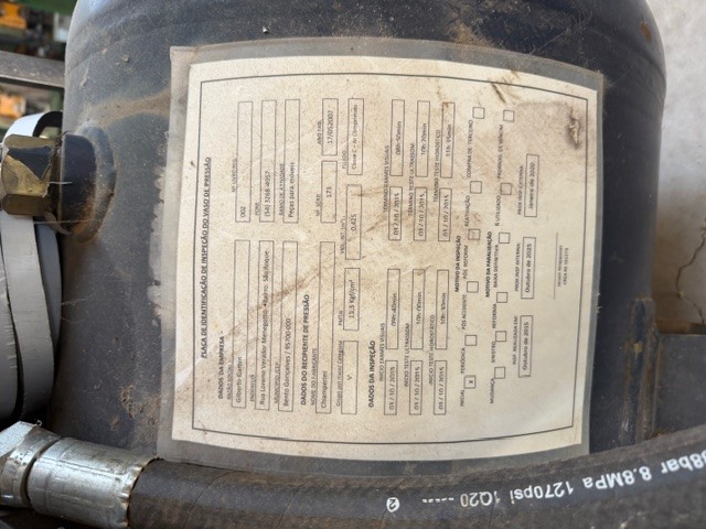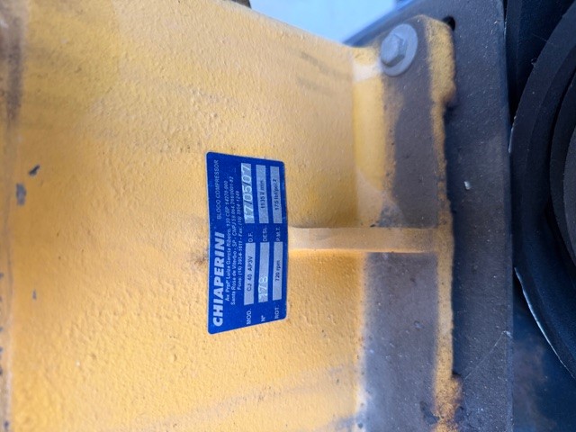 LOTE 1). COMPRESSOR DE AR - MARCA: CHIAPERINI INDUSTRIAL- MODELO: CJ 40 APV4 425L. AVALIAÇÃO: R$ 7.000,00.