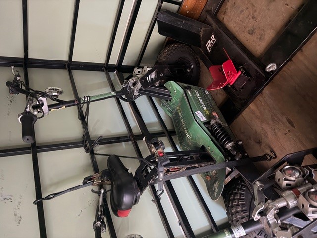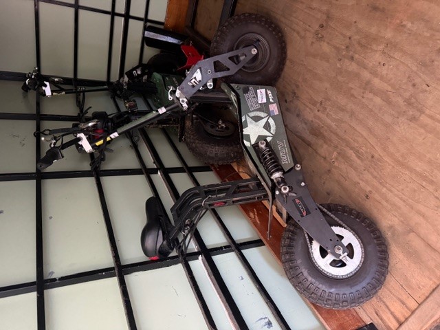 LOTE 19). 02 PATINETES ELÉTRICO, MAIS UM GAZEBO/TOLDO COM ESTRUTURA EM ALUMÍNIO E TOLDO EM LONA COR LARANJA. AVALIAÇÃO: R$ 4.600,00