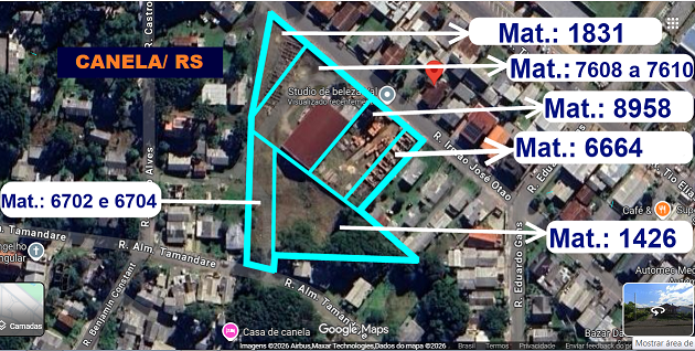 BENS LOTE ÚNICO – IMÓVEL MATRICULAS Nº: 1.426 - 7.608 - 7.609 - 7.610 - 8.958 - 1.831 - 6.664 - 6.702 - 6.704. UM TERRENO URBANO COM APROX. 7.765,96m². Endereço: Rua Irmão José Otao. Vila Maggi, Canela/RS - RS, 95680-000.